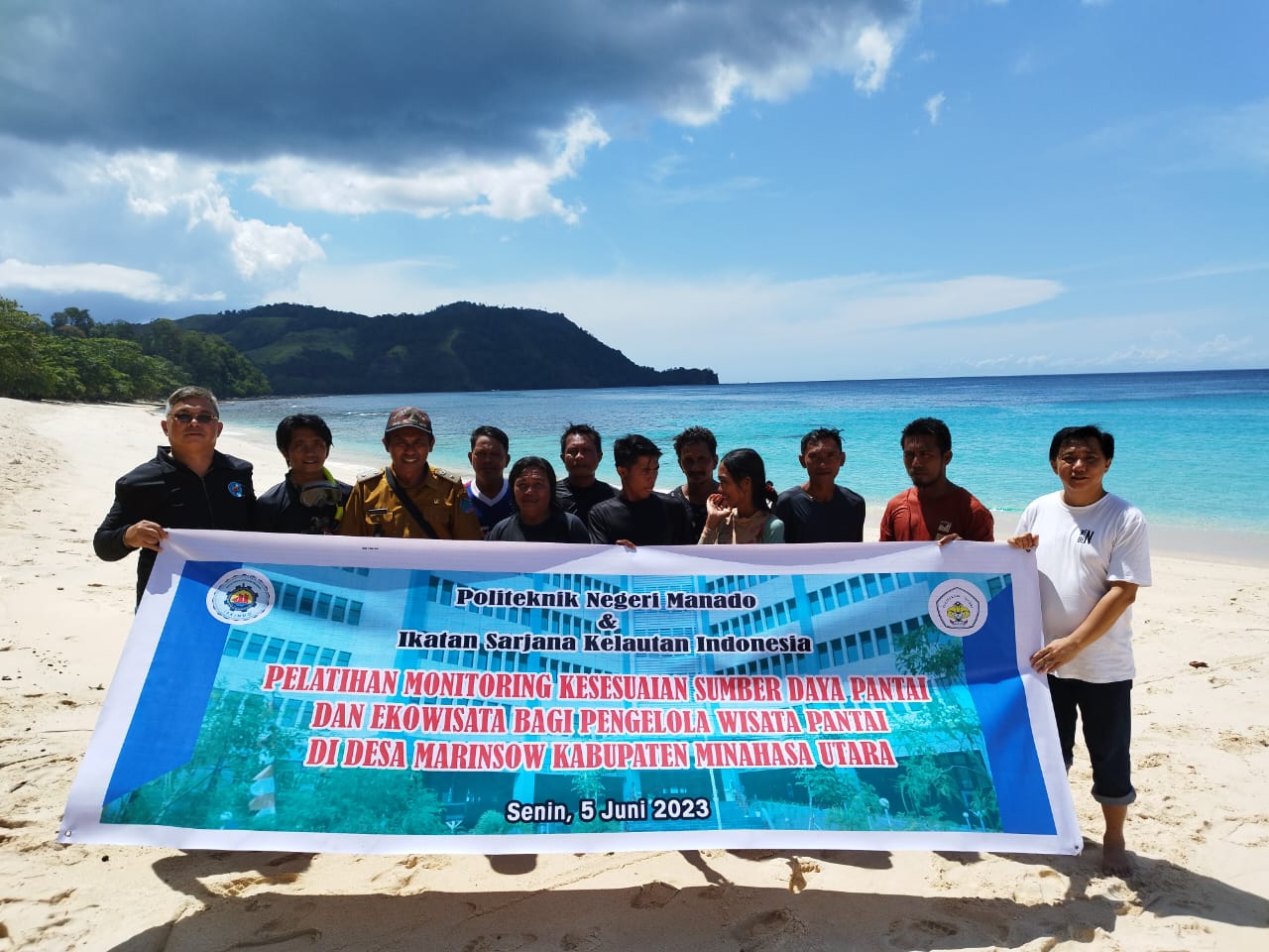 MANADO – Politeknik Negeri Manado (Polimdo) menggelar pengabdian berupa pelatihan monitoring kesesuaian sumber daya pantai dan ekowisata bagi pengelola wisata di Desa Marinsow, Kabupaten Minahasa Utara pada tanggal 6 Juni 2023.