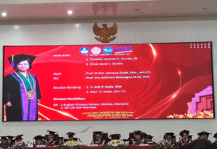 MANADO – Prof. dr. Diana Vanda Doda, MOHS, Ph.D resmi dikukuhkan sebagai Guru Besar dalam Bidang Ilmu Kesehatan Masyarakat Fakultas Kedokteran (Faked) Universitas Sam Ratulangi (Unsrat) pada Kamis, 16 Januari 2024.