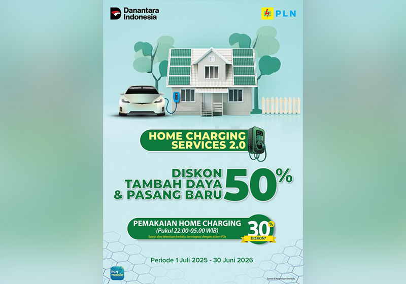 PLN kembali menghadirkan promo spesial melalui program “Home Charging Services 2.0”, memberikan diskon 50% untuk biaya penyambungan home charger dan diskon 30% untuk tarif pengisian daya kendaraan listrik pada pukul 22:00 – 05:00. Promo berlaku mulai 1 Juli 2025 hingga 30 Juni 2026.