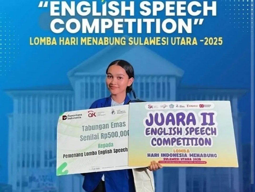 Salah satu rangkaian acara yang menarik perhatian peserta adalah lomba English Speech Competition, yang menjadi wadah bagi generasi muda untuk menunjukkan keterampilan berbahasa Inggris sekaligus menyampaikan gagasan seputar literasi keuangan.