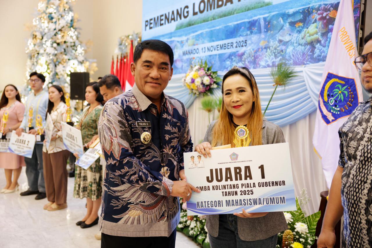 Gubernur Sulawesi Utara, Yulius Selvanus Komaling (YSK), menyerahkan langsung hadiah kepada para pemenang dalam acara yang berlangsung di Wisma Negara Bumi Beringan pada 14 November 2025.