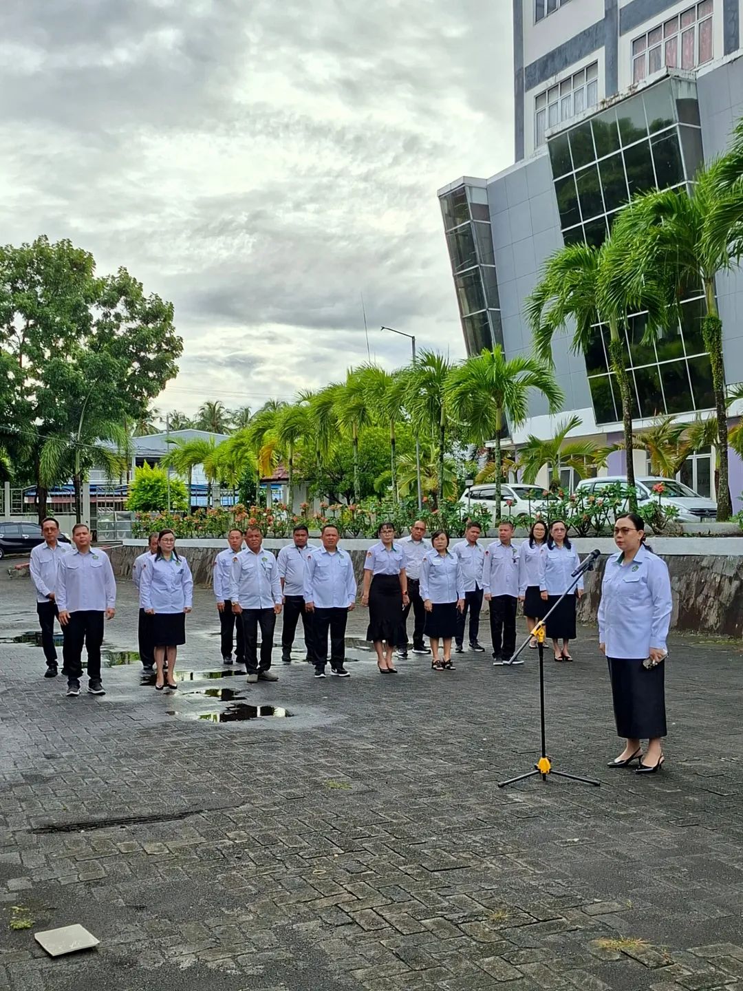 SULUTBICARA.COM – Rektor Institut Agama Kristen Negeri (IAKN) Manado, Dr Olivia Cherly Wuwung ST MPd memimpin pelaksanaan apel pagi perdana Tahun 2026 yang diikuti seluruh pimpinan, dosen, dan tenaga kependidikan sebagai tanda dimulainya aktivitas kerja di awal tahun di Lapangan IAKN Manado, Senin (05/01/2026).