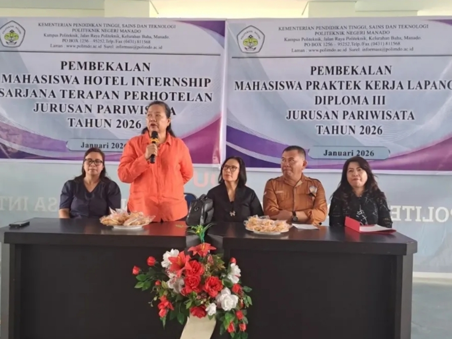 SULUTBICARA.COM – Direktur Polimdo, Dra Mareyke Alelo MBA melepas mahasiswa Jurusan Pariwisata mengikuti Praktik Kerja Lapangan (PKL) di Kantor Pusat, Jumat (30/01/2026).